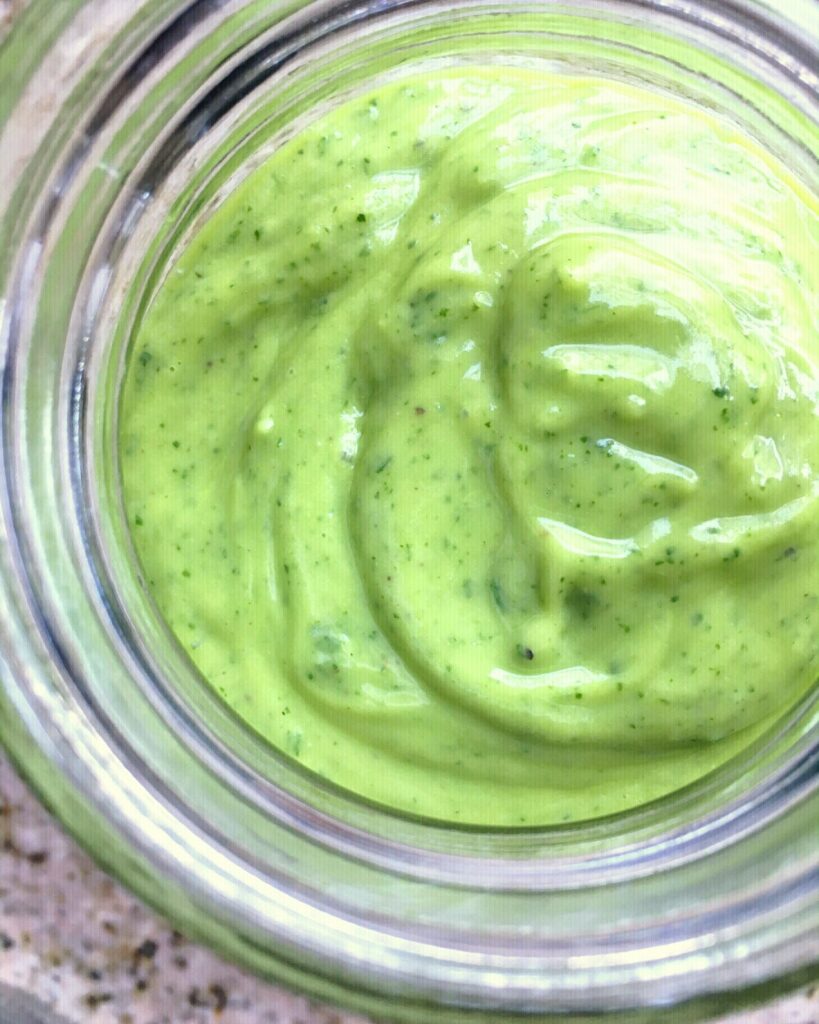 Toss the cilantro into a blender along with yogurt, avocado, and the remaining seasonings. The yogurt can be swapped with dairy-free, low fat, full fat, or any variety you choose. Point being, you do you. Blend away until you reach a smooth, creamy consistency.