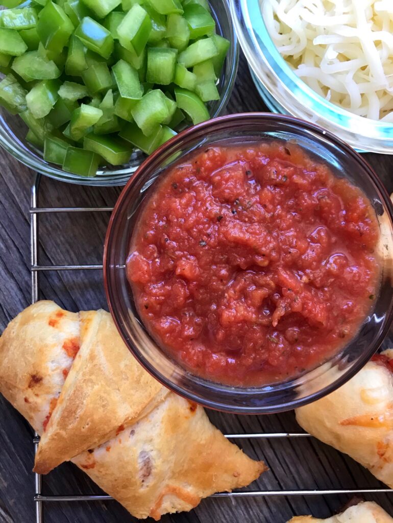 Your favorite food enjoyed in a fun, new way! "Pizza" Crescent Rolls with Homemade Marinara are fun, delicious, and enjoyed by kids of all ages!